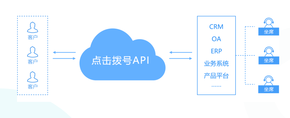 沃创云外呼中心系统可通过对接API通信开放能力平台,让企业自有系统实现通讯功能,只需点击即可实现一键拨号
